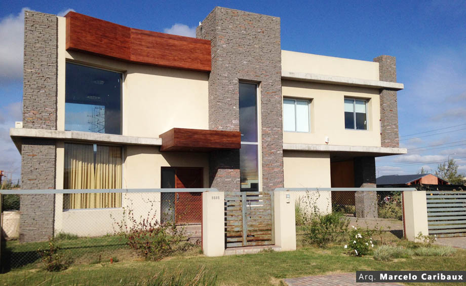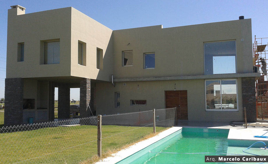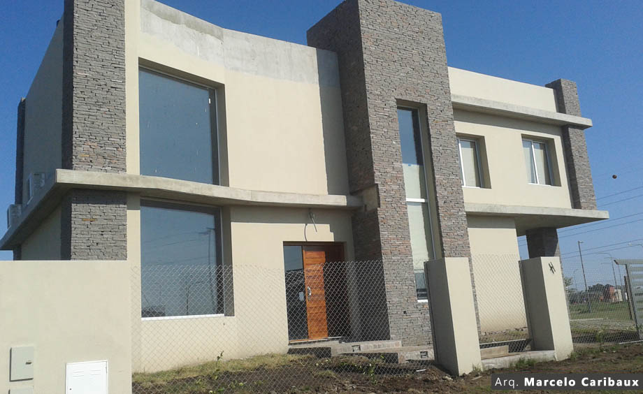 Vivienda familiar, proyectada en un terreno de 20x50 (1000m2) y tiene una superficie cubierta de 230m2 de vivienda entre las dos plantas y 50m2 de quincho y cochera. Consta de 2 plantas, en la cual en la planta baja se ubica la parte social, cocina/comedor y estar/comedor, y en la planta alta se encuentran 3 habitaciones de las cuales una es en suite con vestidor, como característica, el hall de la planta alta balconea sobre el estar/comedor y el hogar a leña ubicado en la planta inferior.