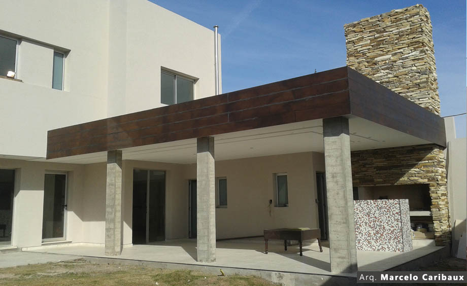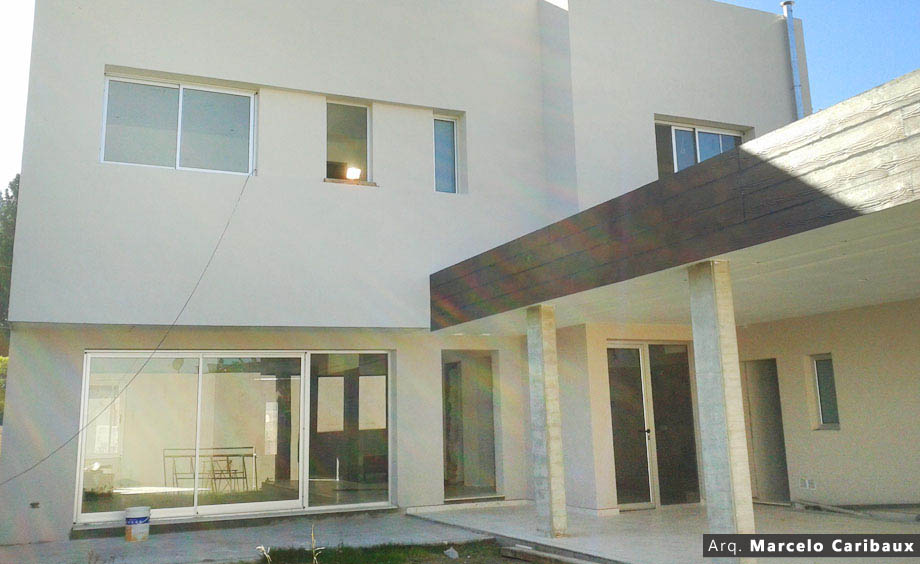 Vivienda familiar, diseñada en un terreno de 300m2. Fue desarrollada en dos plantas donde la parte inferior se encuentra el sector social, cocina/desayunador y estar/comedor, con un total de 88m2 y en la planta alta el sector privado con 3 habitaciones de las cuales una es con baño en suite y vestidor, y otro baño más compartido, ocupando una superficie de 116 m2, dando un total de 254m2 cubierto. Además de esto posee cochera-quincho semicubierto de 82m2, con la característica de diseño que para acceder al mismo tenes la posibilidad de hacerlo por una pasarela de madera perimetral a la vivienda sin la necesidad de ingresar a la parte intima de la vivienda en algún evento social.