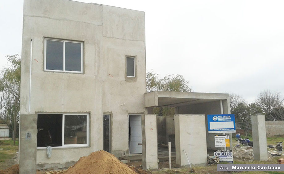 Vivienda familiar, diseñada en un terreno de 210 m2. Fue desarrollada en dos plantas donde la parte inferior se encuentra el sector social, cocina-desayunador y estar–comedor, con un total de 45m2 y en la planta alta el sector privado con 2 habitaciones y un baño, ocupando una superficie de 42m2, dando un total de 87m2 cubierto. Además de esto posee cochera-quincho semicubierto de 21 m2. En la planta alta, está proyectada sobre la cochera-quincho una futura ampliación de una habitación en suite con vestidor.